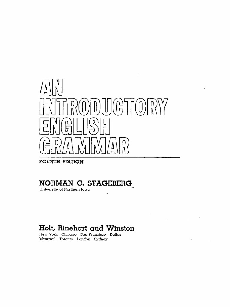 An Introductory English Grammar By N C Stageberg Pdf Grammar Linguistics